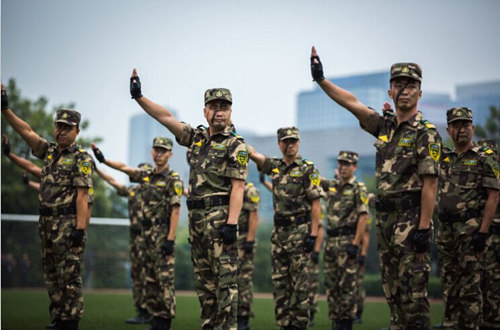在竞赛的第二个科目交通指挥手势演练环节,各支队伍别出心裁,将单调的交通手势与秩序维护工作中的特点结合,经过精心编排,形成一套极具观赏性的手势操。参赛人员在领队的口令下,动作整齐划一、铿锵有力,展示了秩序维护队员们平日里兢兢业业工作积累的成果。