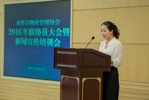 9月2日下午,成都市物业管理协会在房产分中心三楼多功能会议室召开2016年联络员大会暨新闻宣传培训会,对30位获得2016年“优秀联络员”称号的同志进行了表彰,并开展了媒体公关、新闻写作和摄影培训。成都市城乡房产管理局物业管理处副处长姜鲁东、新闻宣传办公室主任胡建华应邀出席会议并讲话。协会会长闻涛、常务副会长兼秘书长巫庆敏出席会议,200余家会员单位的联络员参加了会议。会议由协会副秘书长苟强主持。
