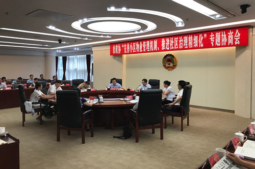 6月29日下午,市政协召开“完善小区物业管理机制、推进社区治理精细化”专题协商会议。市政协副主席侯一平主持会议并讲话。市委政法委常务副书记戴德军,市政协副秘书长王泉,以及市政协社法民宗委、市公安局、市民政局、市房管局、市政府法制办等部门负责人,部分区(市)县政协、街道办事处和社区有关负责同志,部分市政协委员和相关专家学者出席会议。