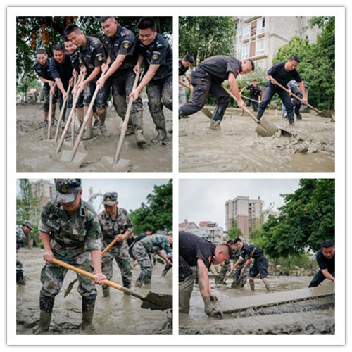 由于金堂通讯信号几乎中断,一部分人只能逐个小区排查受灾情况;另一部分人赶赴毗河畔灾情较重的水韵金沙小区。洪水退去后的小区外围积起厚厚的淤泥,齐膝深的雨靴也不管用,踩上就很难拔出来。增援的小伙子们有的干脆脱掉鞋子赤脚上阵。直到晚上7点,外围及临河路面基本疏通。
